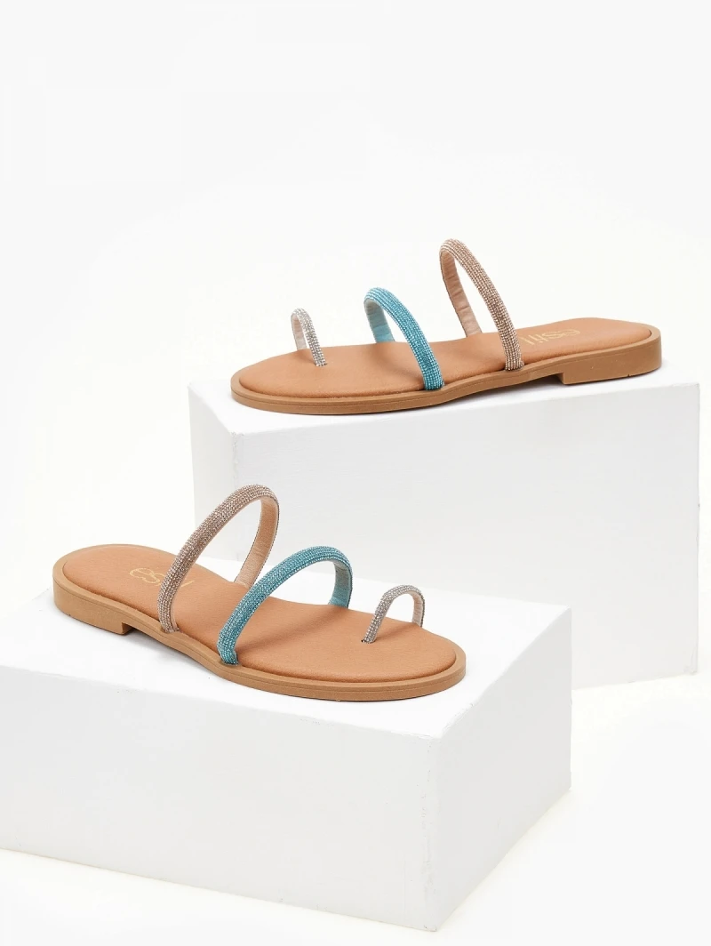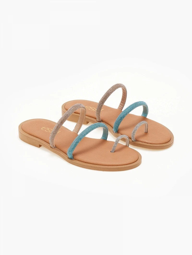 Σανδάλια δερμάτινα ESTIL με strass και διχρωμία. Έχουν δερμάτινο πάτο με ενίσχυση. Ελληνικής κατασκευής.