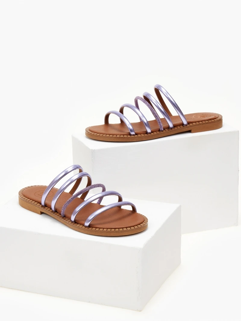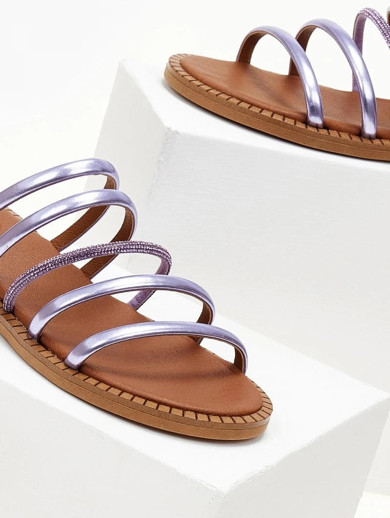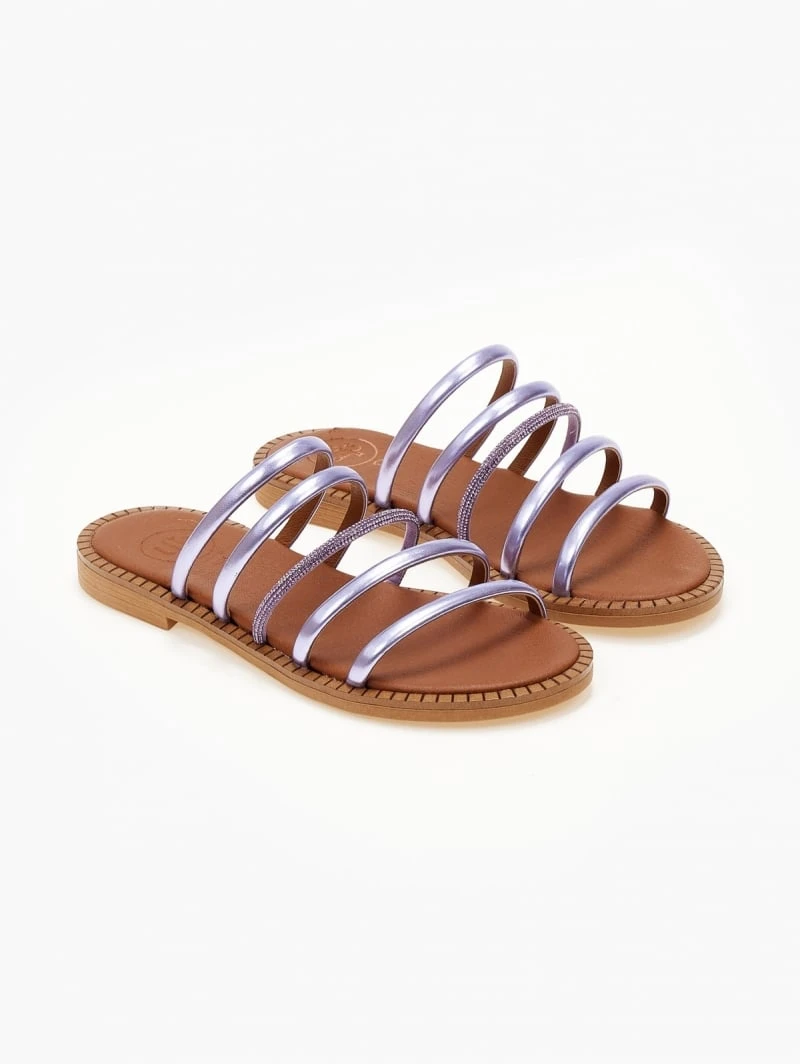 Σανδάλια TFP με λεπτά λουράκια και strass. Έχουν μαλακό δερμάτινο πάτο με ενίσχυση. Ελληνικής κατασκευής.
