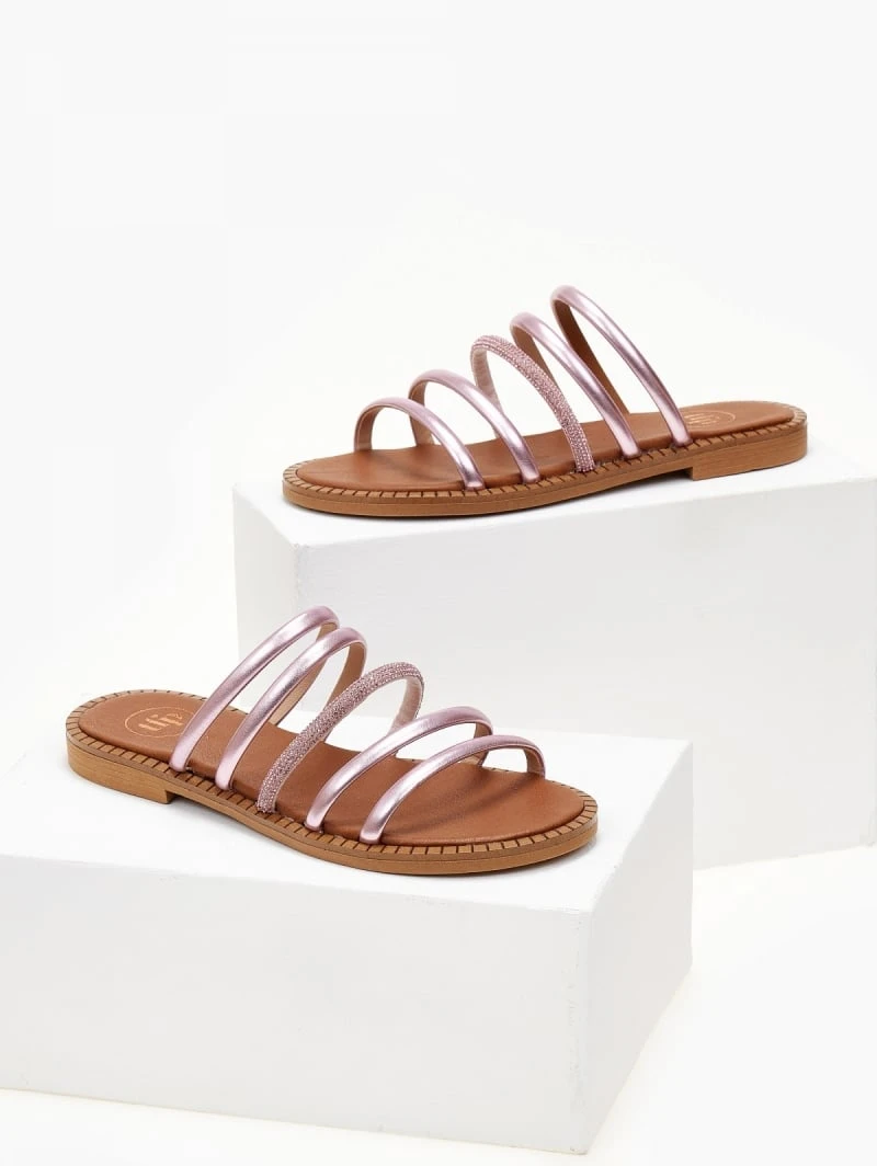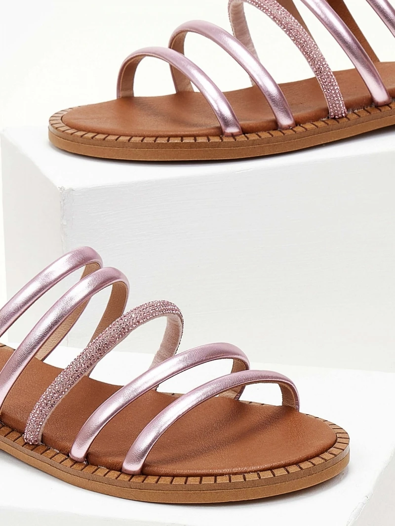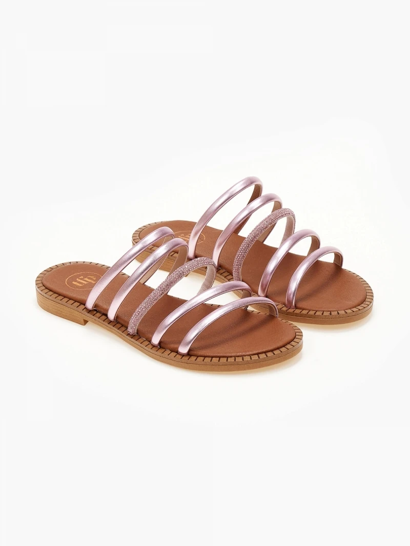 Σανδάλια TFP με λεπτά λουράκια και strass. Έχουν μαλακό δερμάτινο πάτο με ενίσχυση. Ελληνικής κατασκευής.