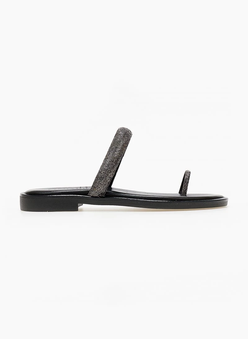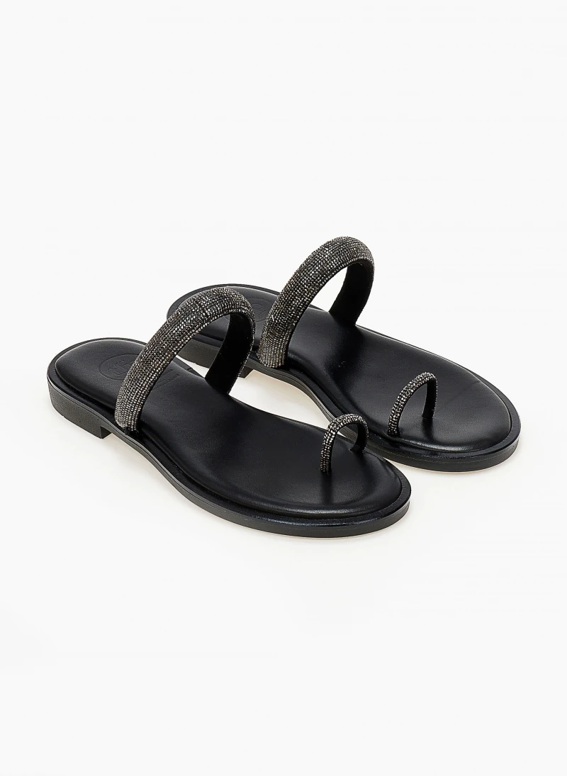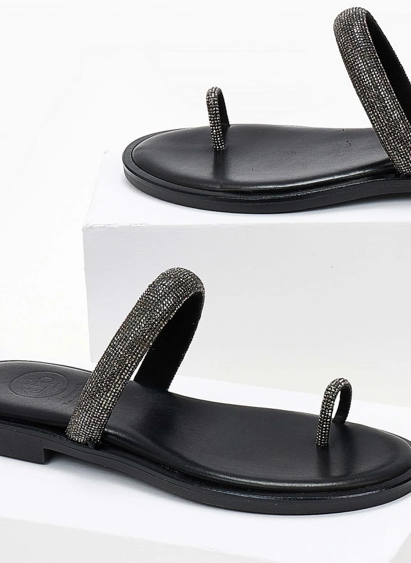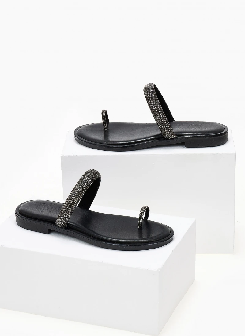 Σανδάλια δερμάτινα TFP με strass λουράκι. Ο πάτος είναι δερμάτινος, ανατομικός, με ενίσχυση. Ελληνικής κατασκευής, χειροποίητα.