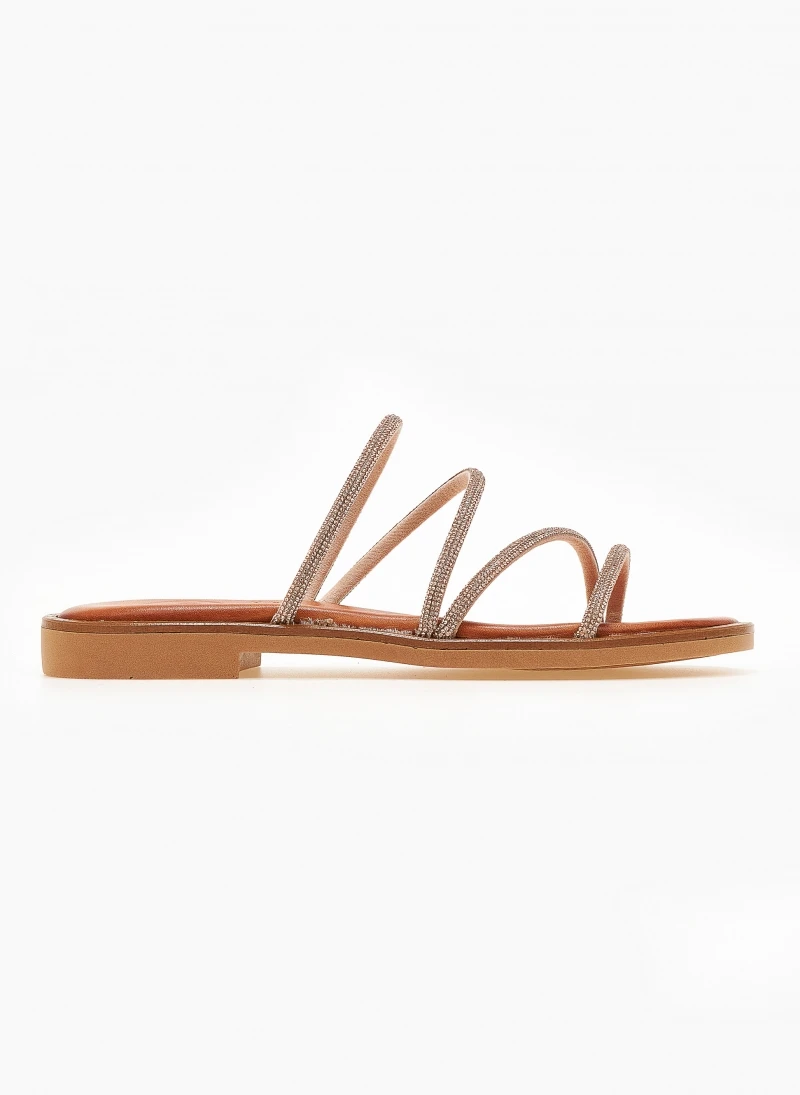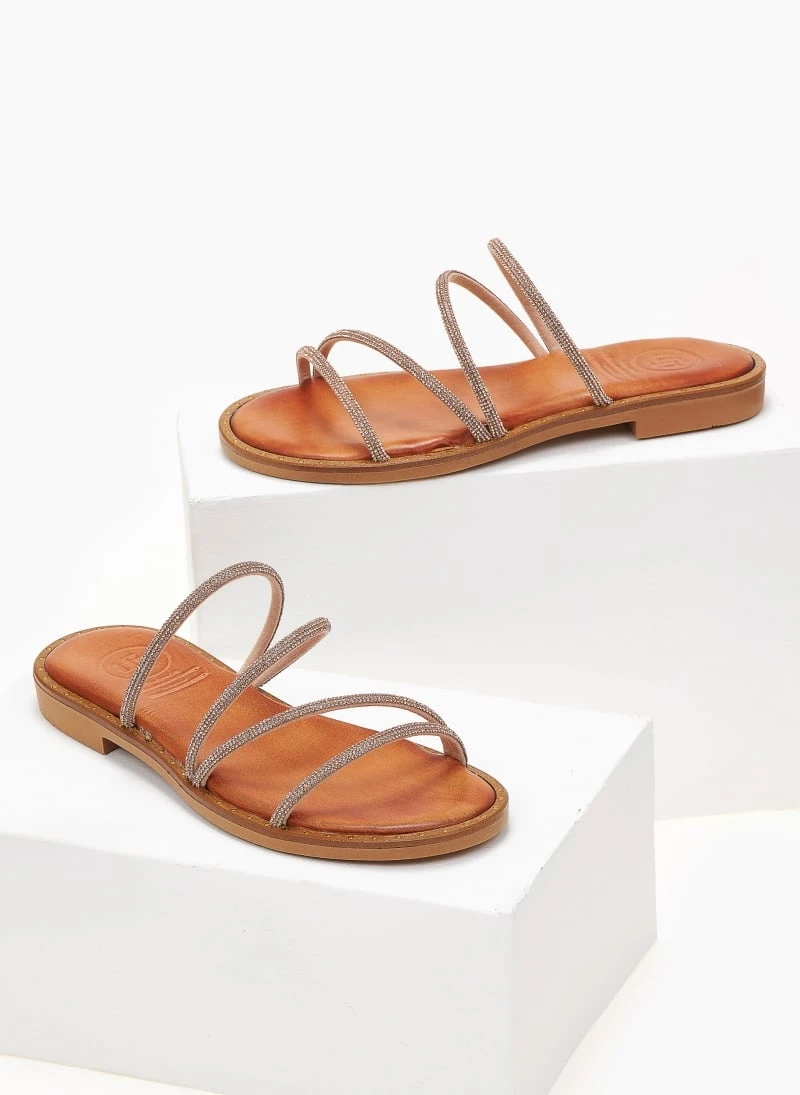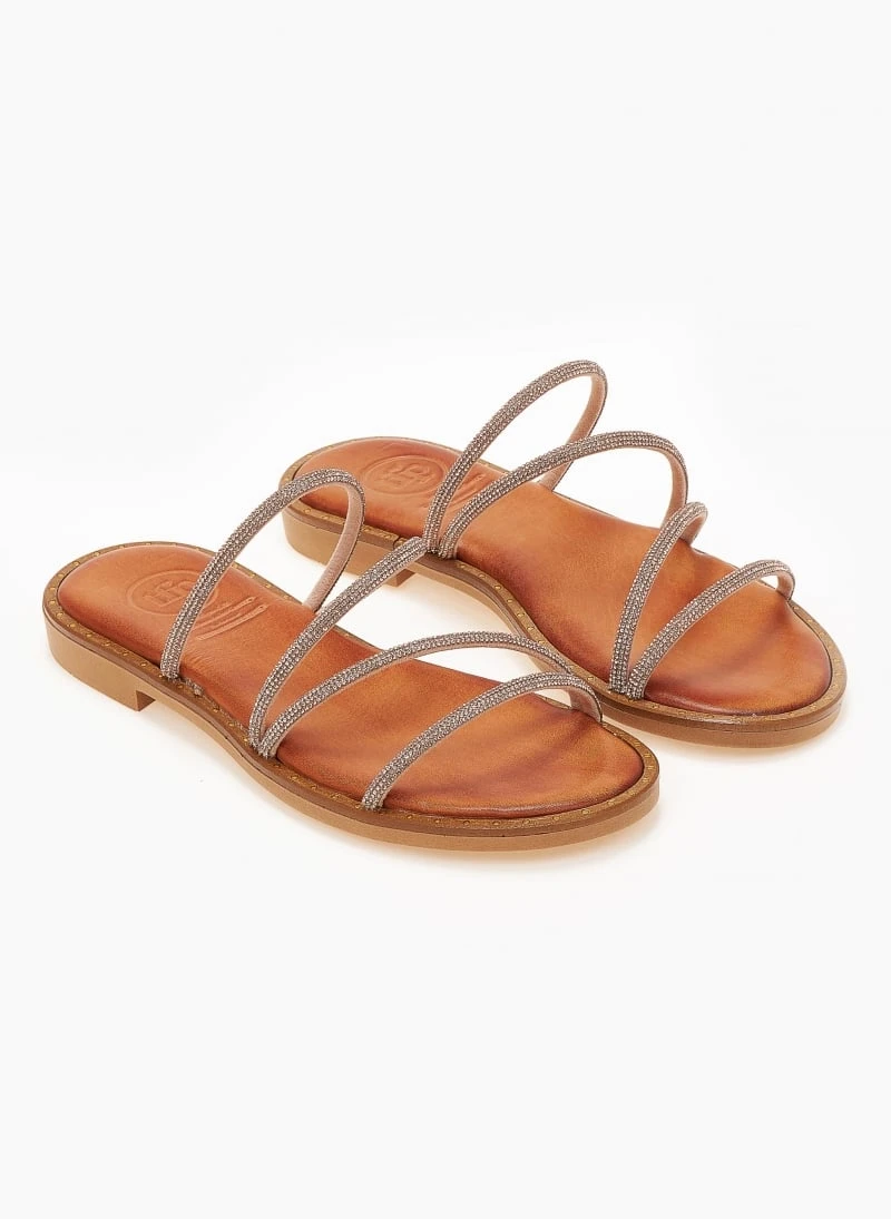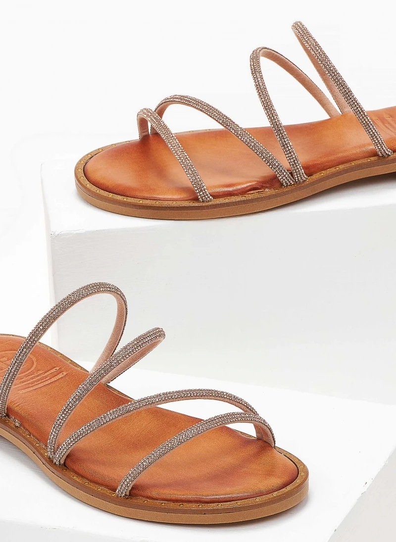 Σανδάλια δερμάτινα TFP με λεπτά strass λουράκια.Έχουν λεπτομέρεια σε μεταλλικό χρώμα περιμετρικά της σόλας.Δερμάτινος πάτος με ενίσχυση.Ελληνικής κατασκευής.