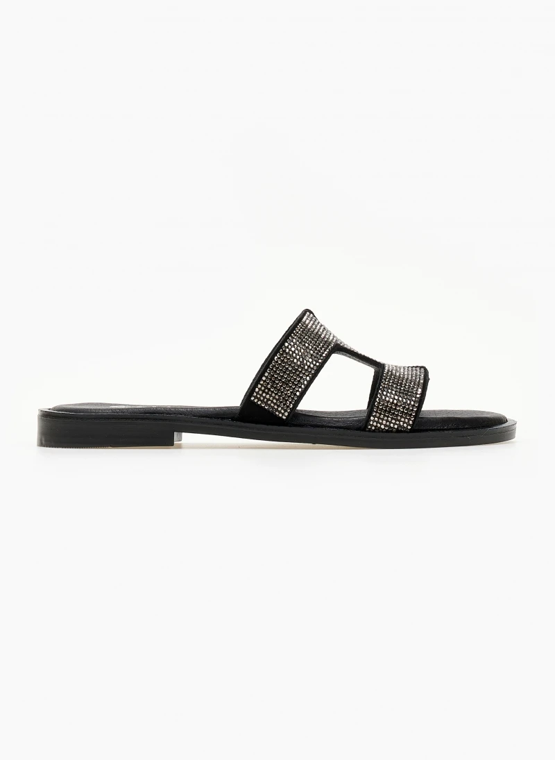 Σανδάλια δερμάτινα TFP με μικρά strass. Έχουν φάσα με ανοίγματα στο πλάι. Δερμάτινος πάτος με ενίσχυση. Ελληνικής κατασκευής.