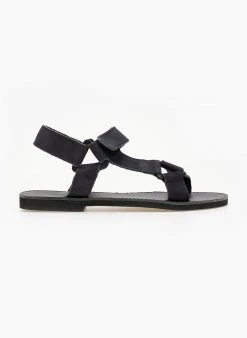 Estil φλατ δερμάτινα nubuck σανδάλια με velcro αυτοκόλλητο. Αναγεννημένο δέρμα πάτος. Ελληνικής κατασκευής.