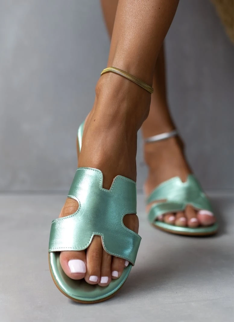 Σανδάλια δερμάτινα ESTIL. Έχουν φαρδιά φάσα με ανοίγματα σε μεταλλικά χρώματα. Δερμάτινος πάτος. Ελληνικής κατασκευής,χειροποίητα.