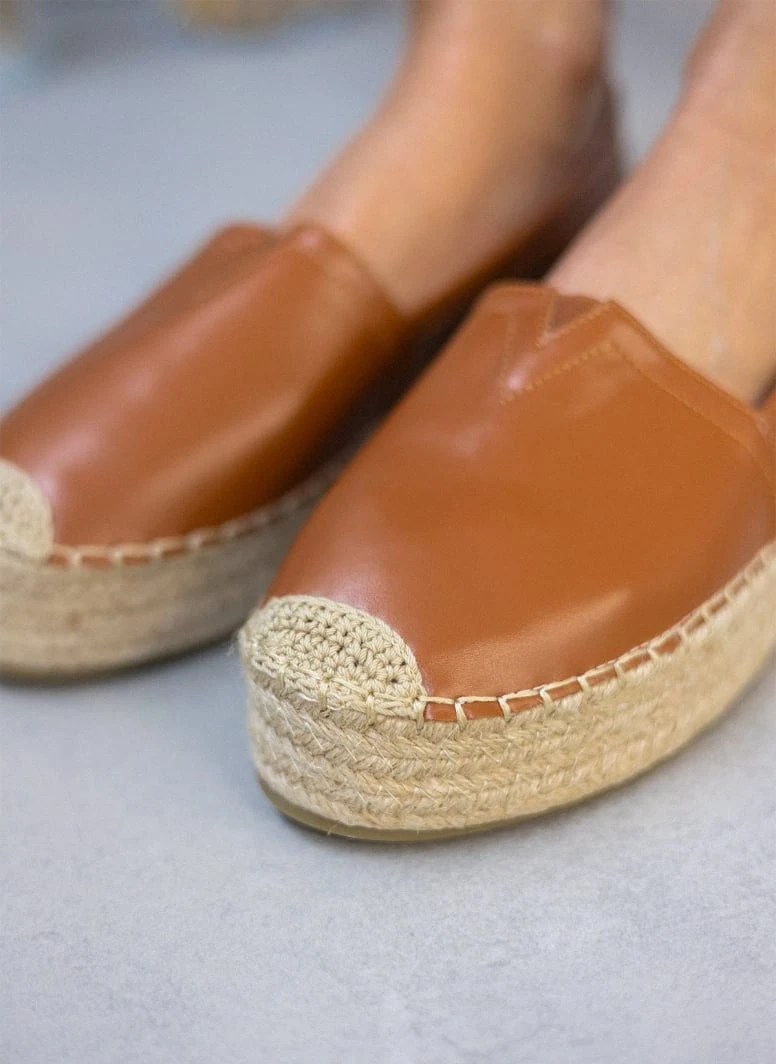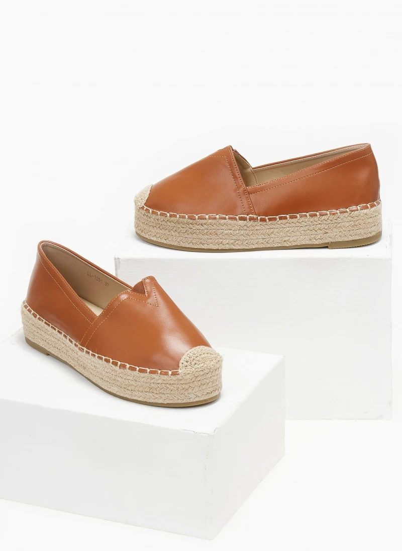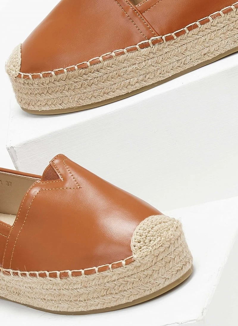 Basic εσπαντρίγιες από δερματίνη με σχοίνινη σόλα και εξωτερική ραφή. Η σόλα είναι από λάστιχο.
