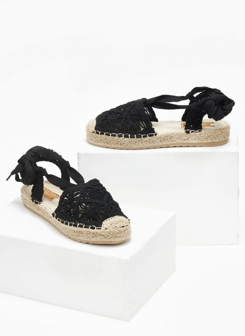 Εσπαντρίγιες πλεκτές lake up. Έχουν σχοινί και εξωτερική ραφή στη σόλα. Ανοιχτή φτέρνα.
