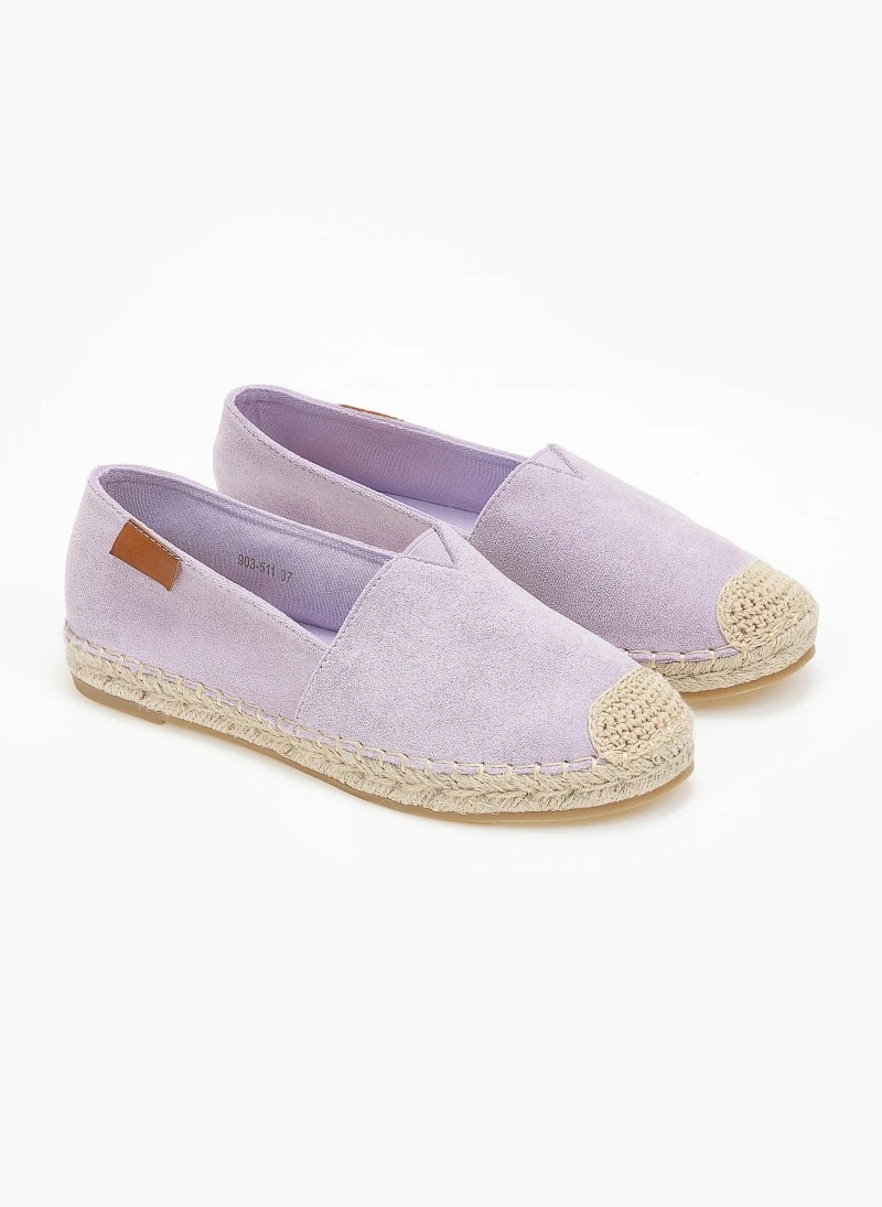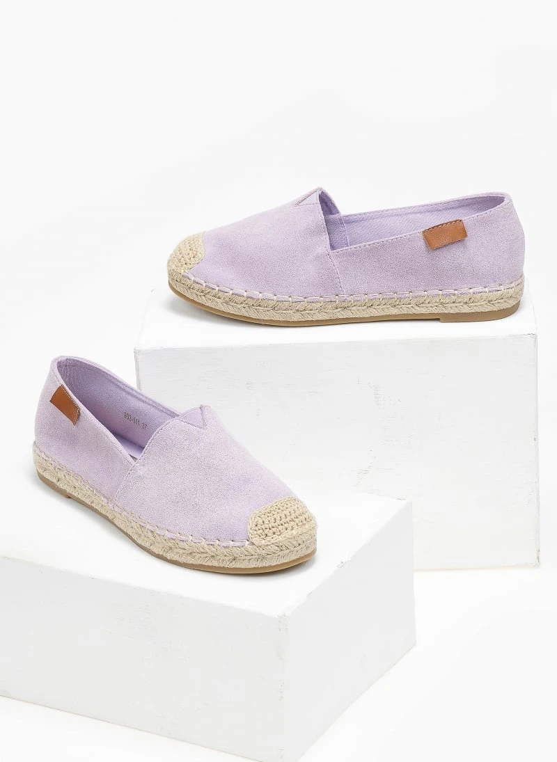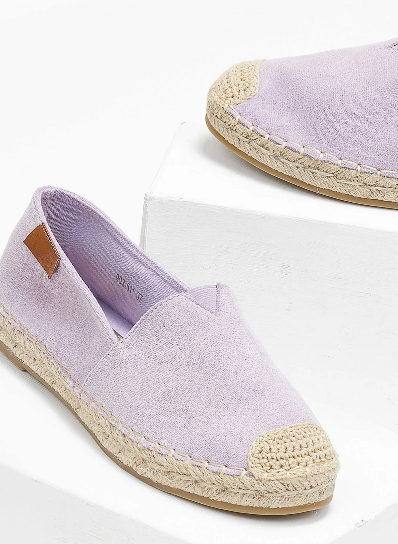 Εσπαντρίγιες suede με εξωτερική ραφή στη σόλα. Έχουν διακριτικό λάστιχο σε V σχήμα στο κουετεπιέ για καλύτερη εφαρμογή. Σόλα με λάστιχο.