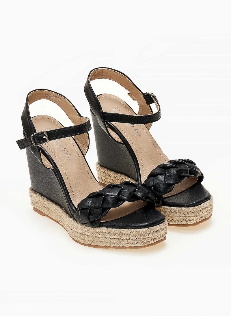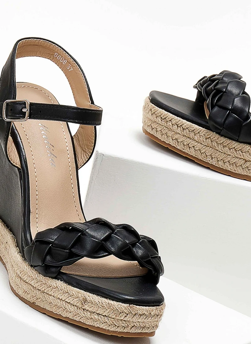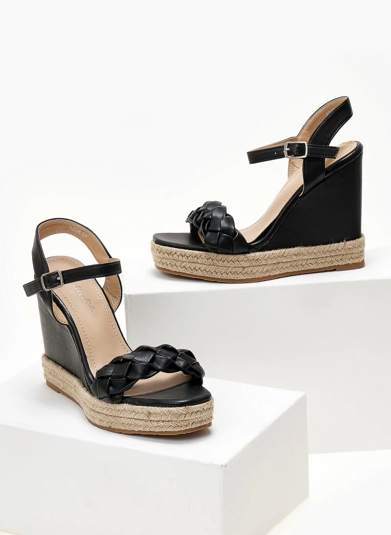 Πλατφόρμες με πλεκτή φάσα. Έχουν λεπτομέρεια σχοινί στη σόλα. Δένουν με μπαρέτα στο ύψος του κουτεπιέ.