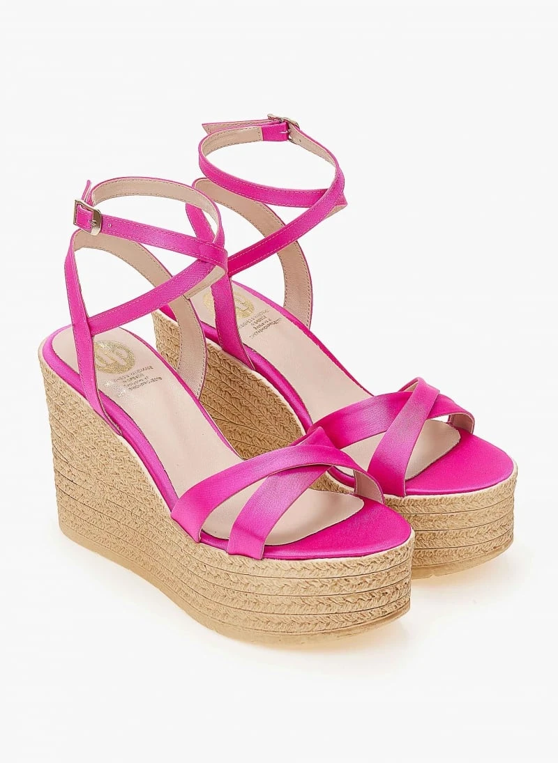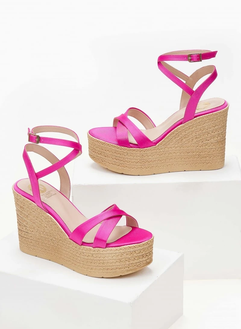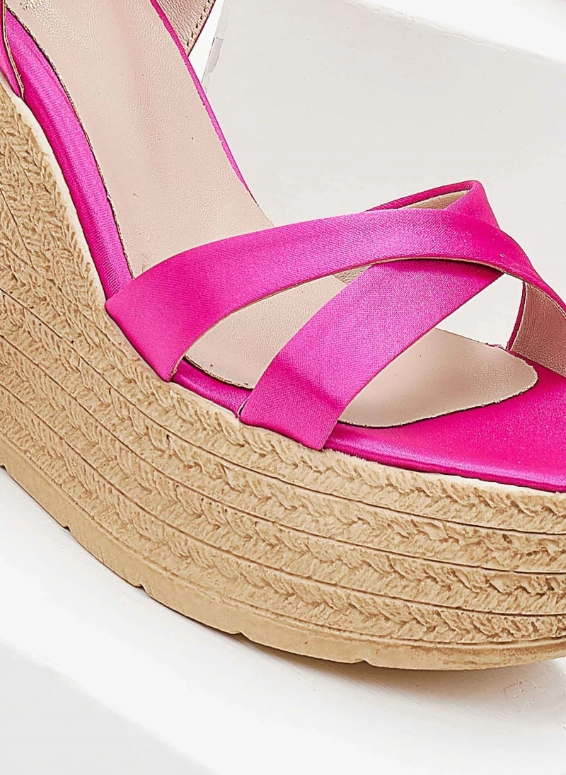 Πλατφόρμες πέδιλα σατέν με δέσιμο χιαστί. Δένουν στο πλάι του αστραγάλου. Ελληνικής κατασκευής.