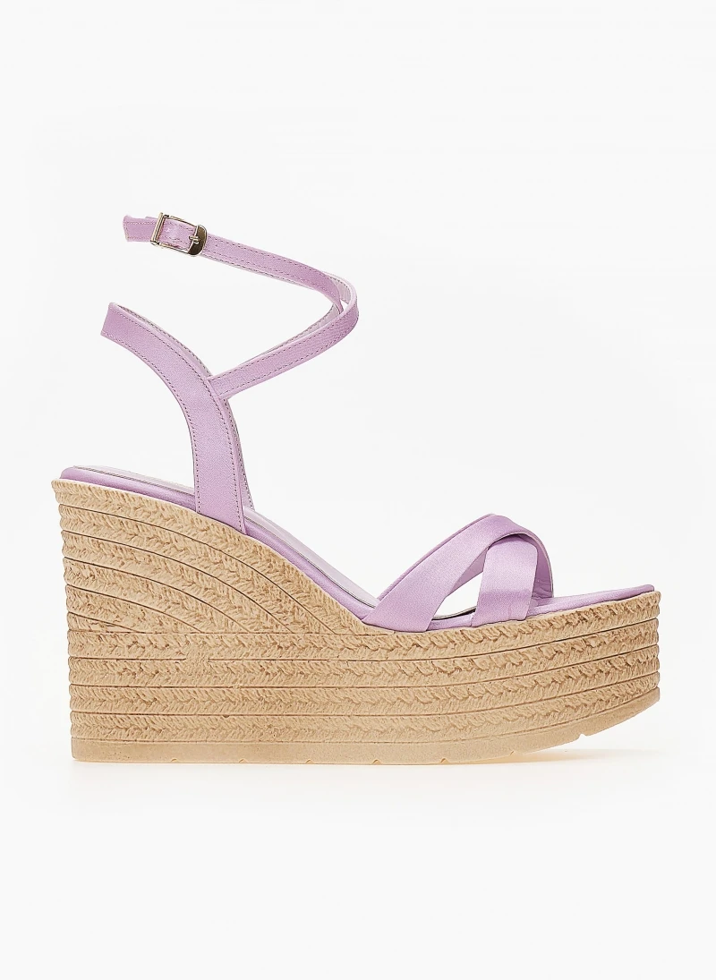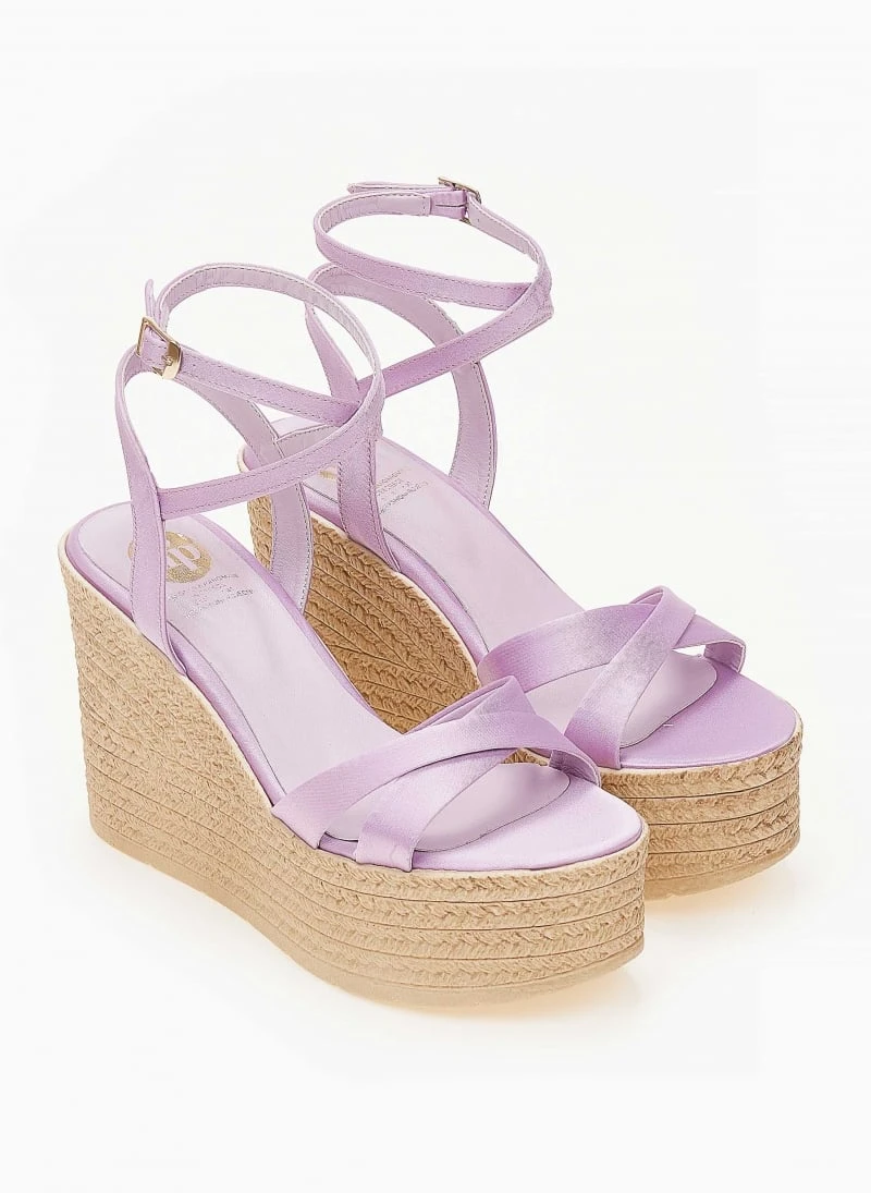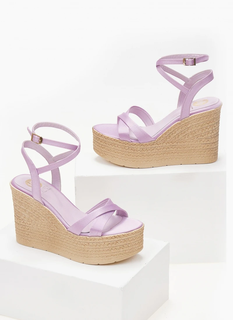 Πλατφόρμες πέδιλα σατέν με δέσιμο χιαστί. Δένουν στο πλάι του αστραγάλου. Ελληνικής κατασκευής.