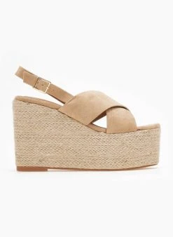 Πλατφόρμες suede με φαρδιές χιαστί φάσες. Έχουν σόλα ντυμένη με σχοινί. Δένουν με λουράκι στο πλάι. Suede πάτος με ενίσχυση.