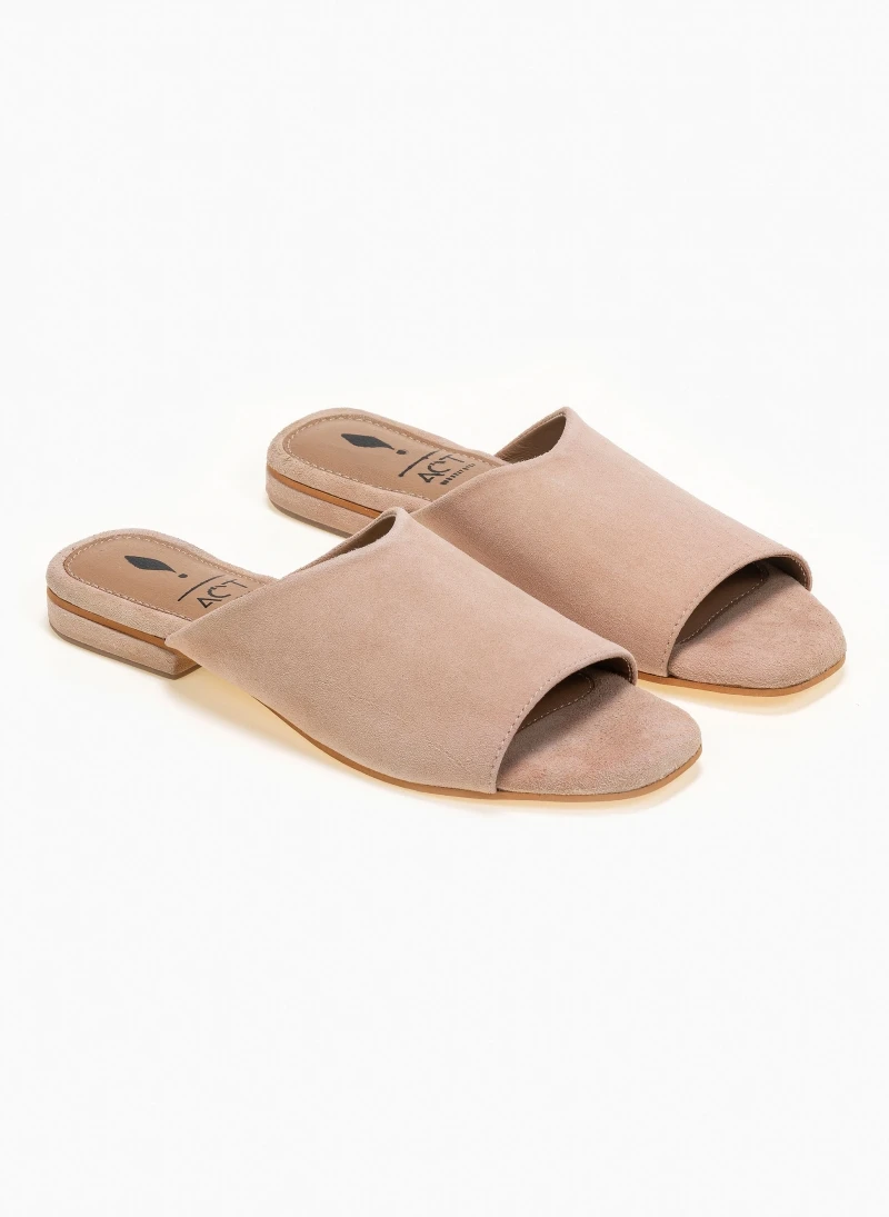 Φλατ πέδιλα με χωστή φάσα από δέρμα καστόρι.