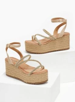 Φλατ σανδάλια με strass και σόλα από λάστιχο. Έχουν λάστιχο στο πίσω μέρος.