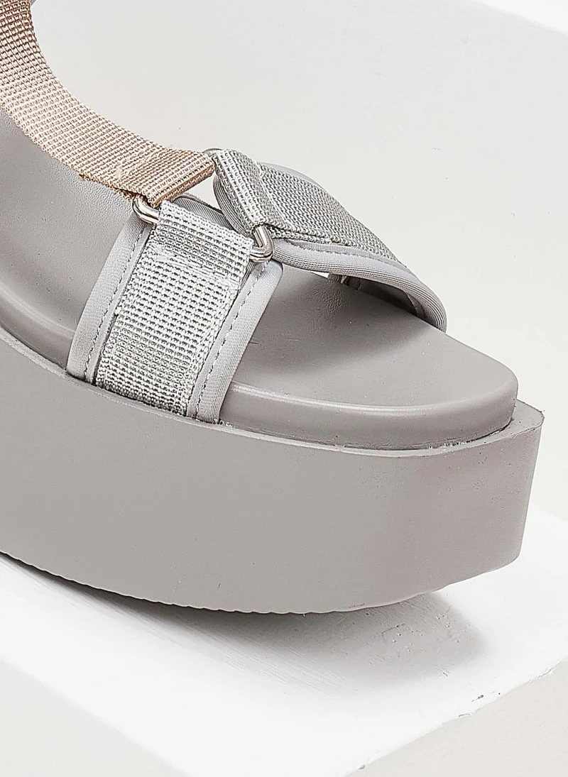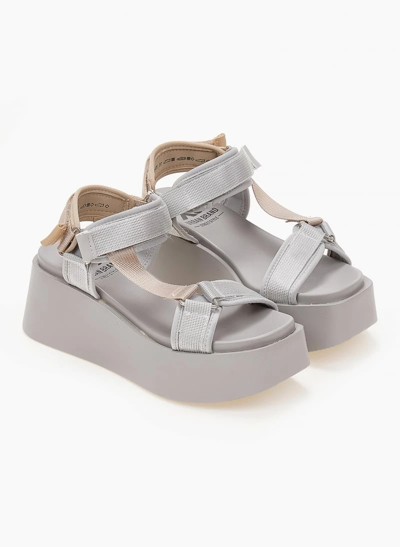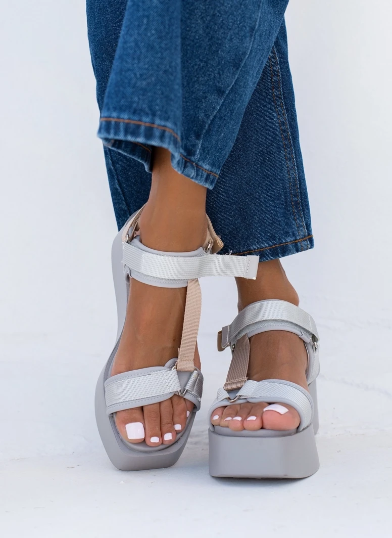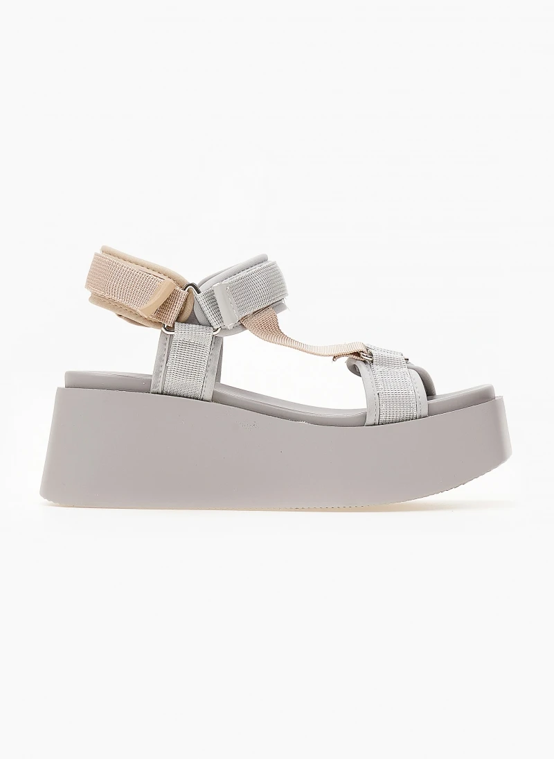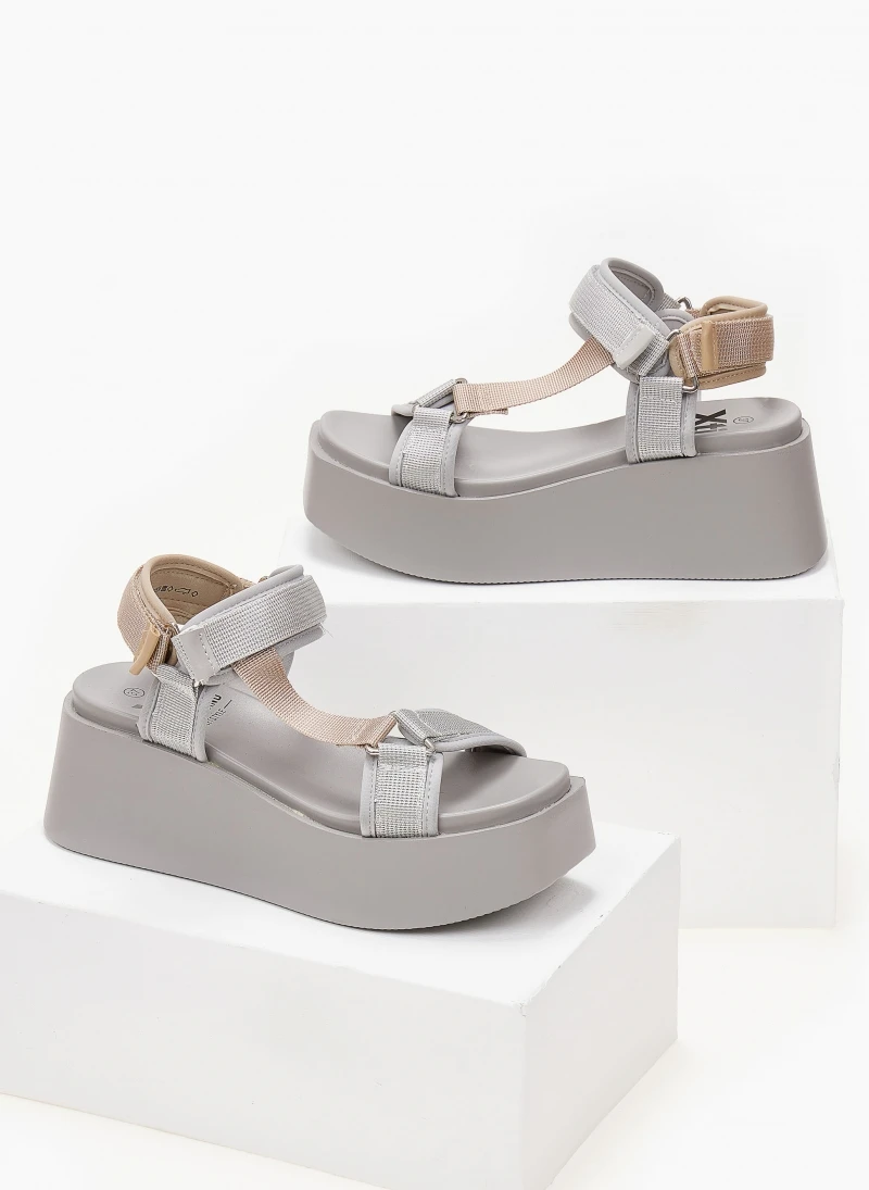 Πλατφόρμες σανδάλια σε καρέ γραμμή.Έχουν φαρδιές υφασμάτινες φάσες με velcro αυτοκόλλητα.Vegan approved.